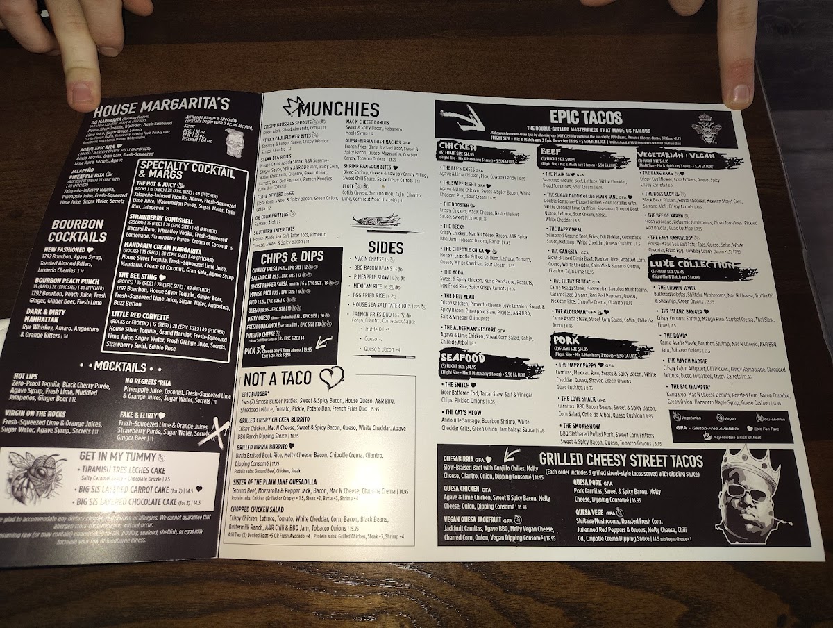 Two of our Epic Tacos served with a half order of Chips and Salsa. Sub Guacamole for $2.00